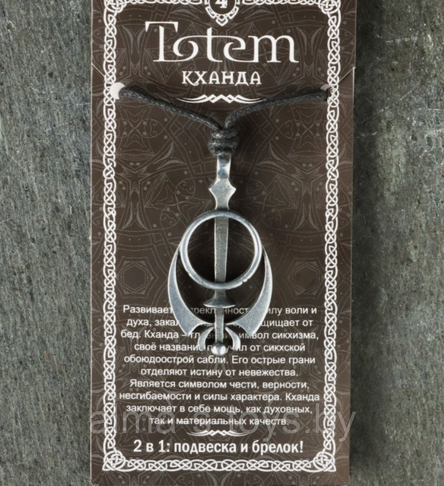 Амулет-талисман Кханда -это главный символ сикхизма, закаляет характер, защищает от бед. Развивает неприклонность своего владельца, силу воли и духа.